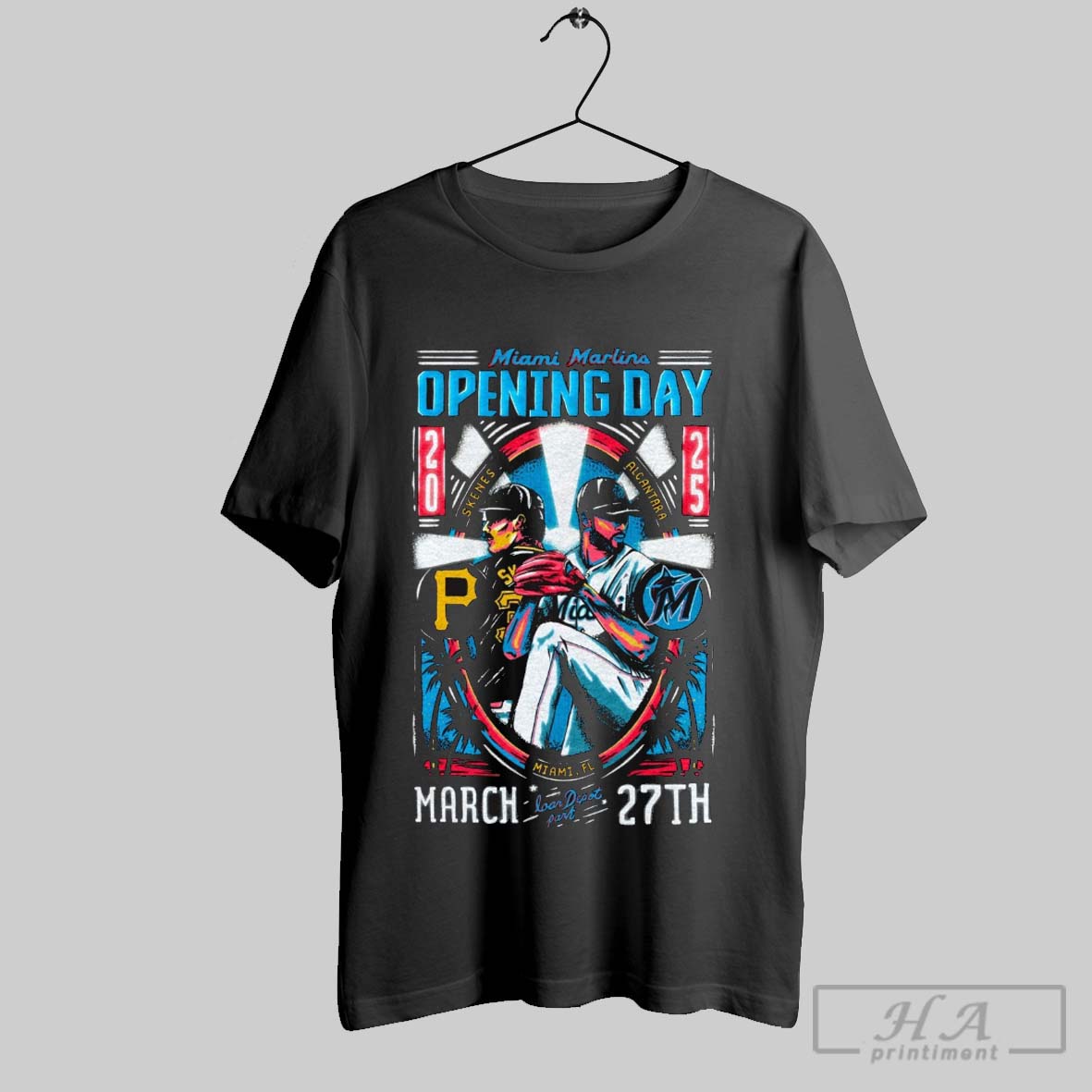 Official Miami Marlins Opening Day Skenes Vs Alcantara Miami Fl March 27th 2025 Loandepot Park Poster T Shirt