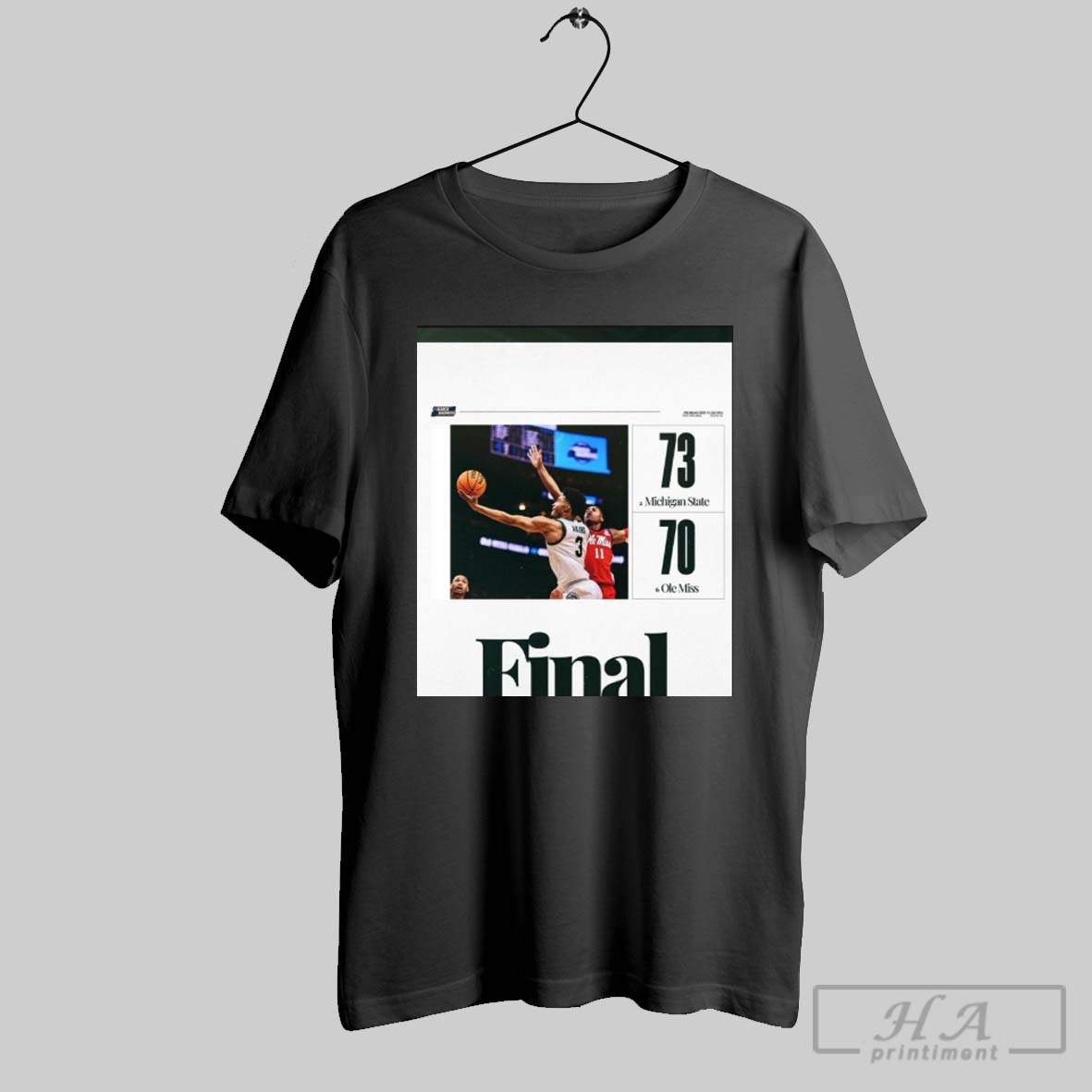 Official Michigan State Spartans Basketball Win 73 70 Ole Miss Final Score Ncaa March Madness 2025 T Shirt