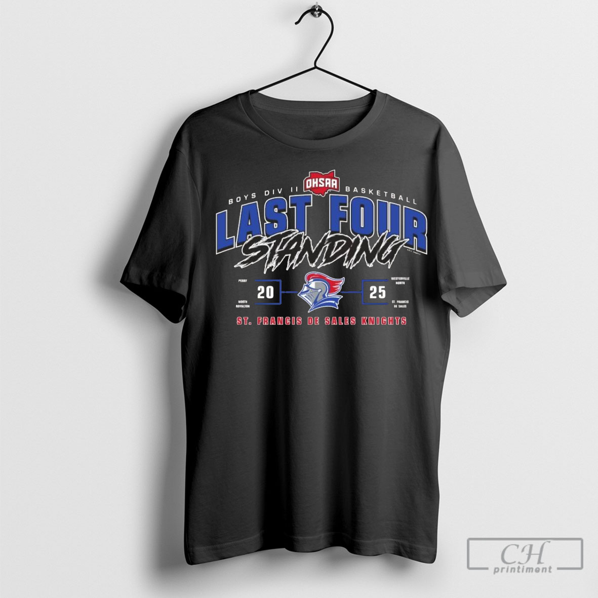 Official St Francis De Sales Knights 2025 Ohsaa Boys Division Ii Basketball Last Four Standing Shirt Sweatshirt Poster