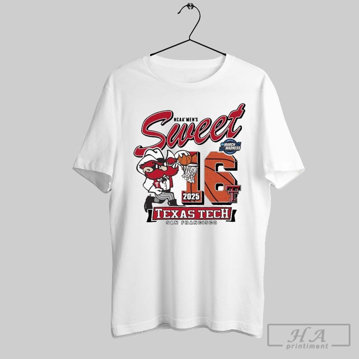 Official Texas Tech Red Raiders 2025 Ncaa Mens Sweet 16 Dunk On You March Madness San Francisco Mascot T Shirts