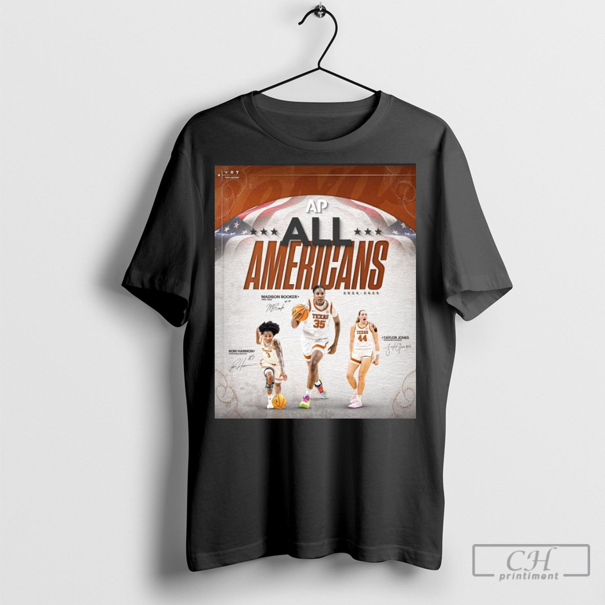 Official Texas Womens Basketball Ap All Americans 2024 2025 Madison Booker Rori Harmon Taylor Jones Signatures T Shirt Sweatshirt
