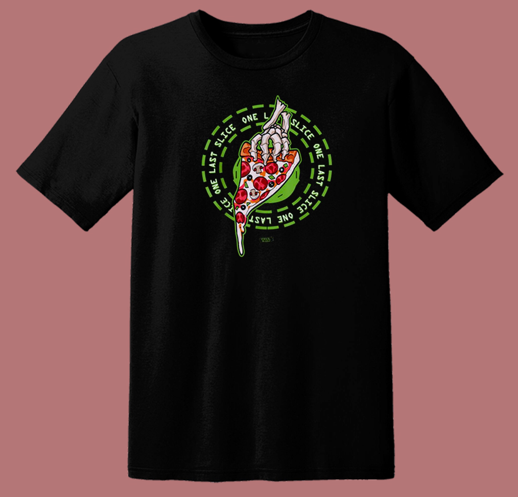 One Last Slice Pizza Skeletons 80s T Shirt Style