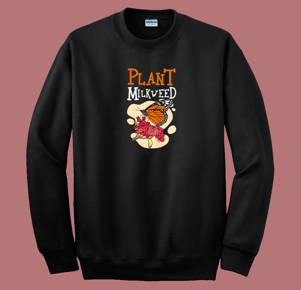Plant Milkweed Butterfly Graphic 80s Sweatshirt