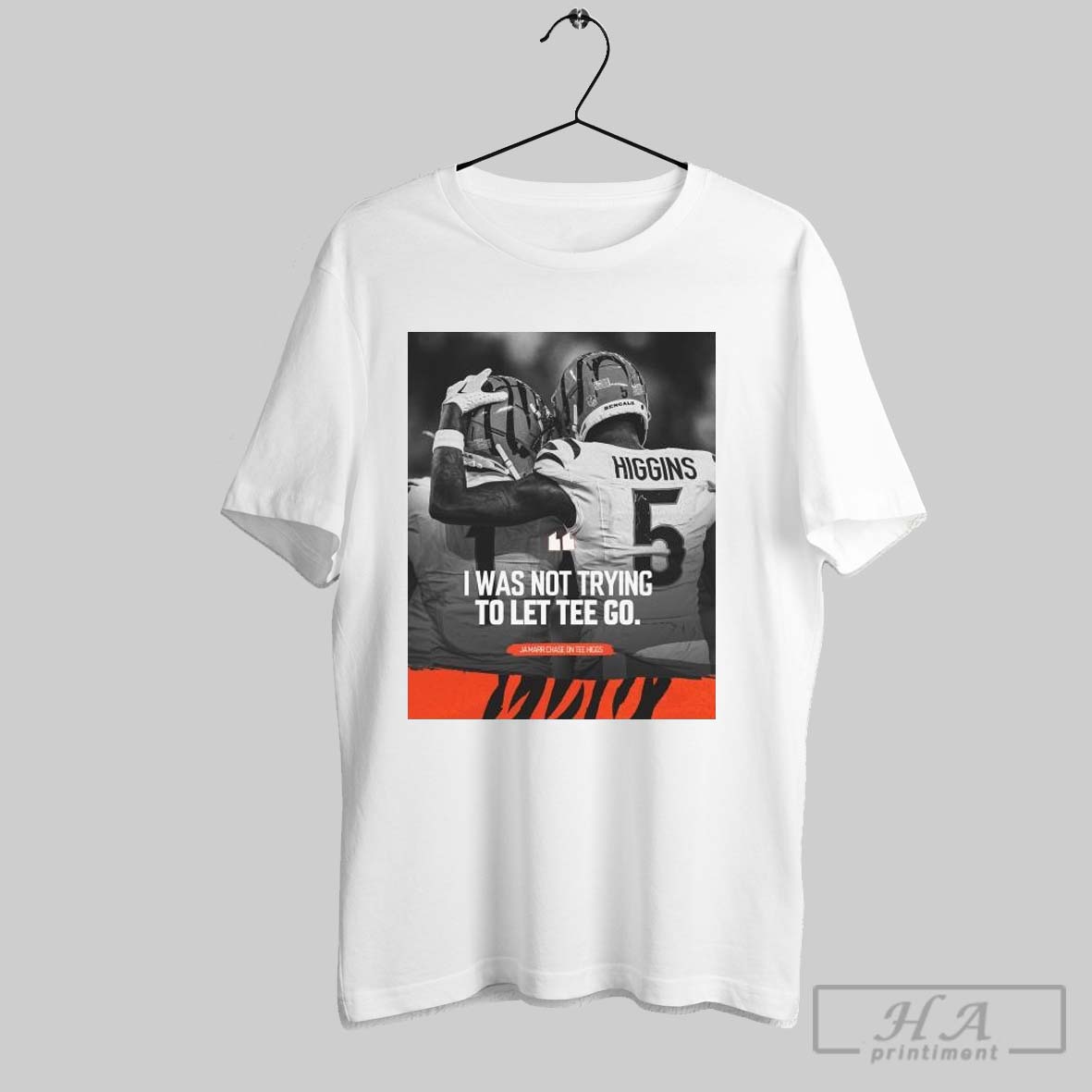 Poster Cincinnati Bengals Nfl Jamarr Chase On Tee Higgs I Was Not Trying To Let Tee Go T Shirt