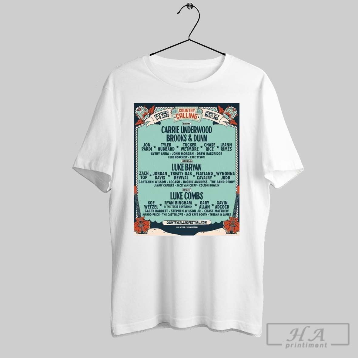 Poster Country Calling Festival Carrie Underwood Brooks And Dunn Luke Bryan Luke Combs Oct 3 5 2025 T Shirt
