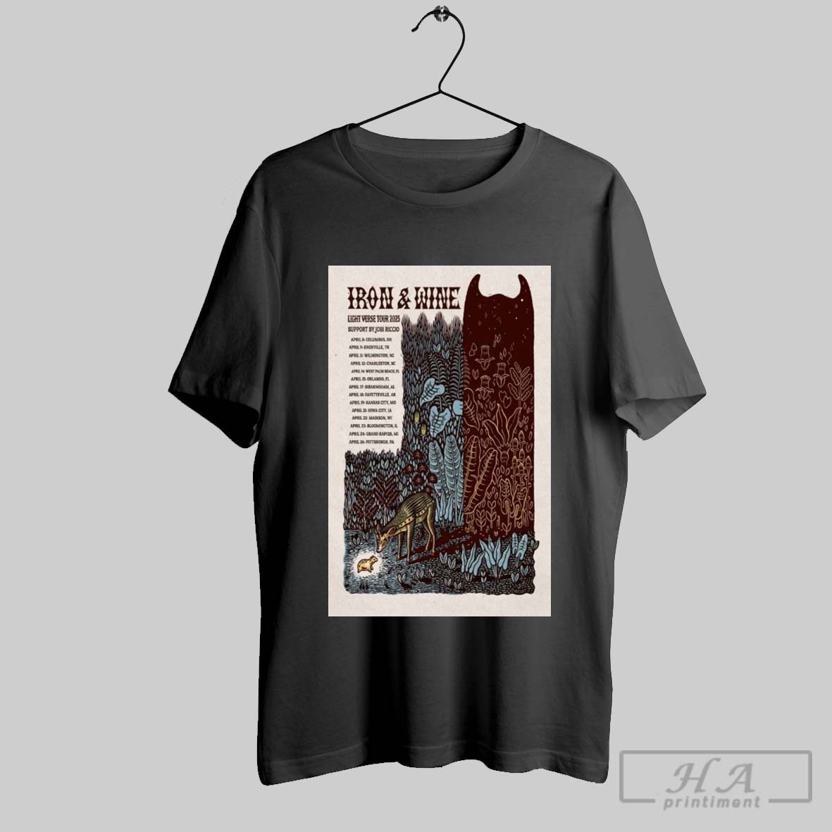 Poster Iron Wine Light Verse Tour 2025 Support By Jobi Riccio April 8 Columbus Oh April 9 Knoxville Tn T Shirt