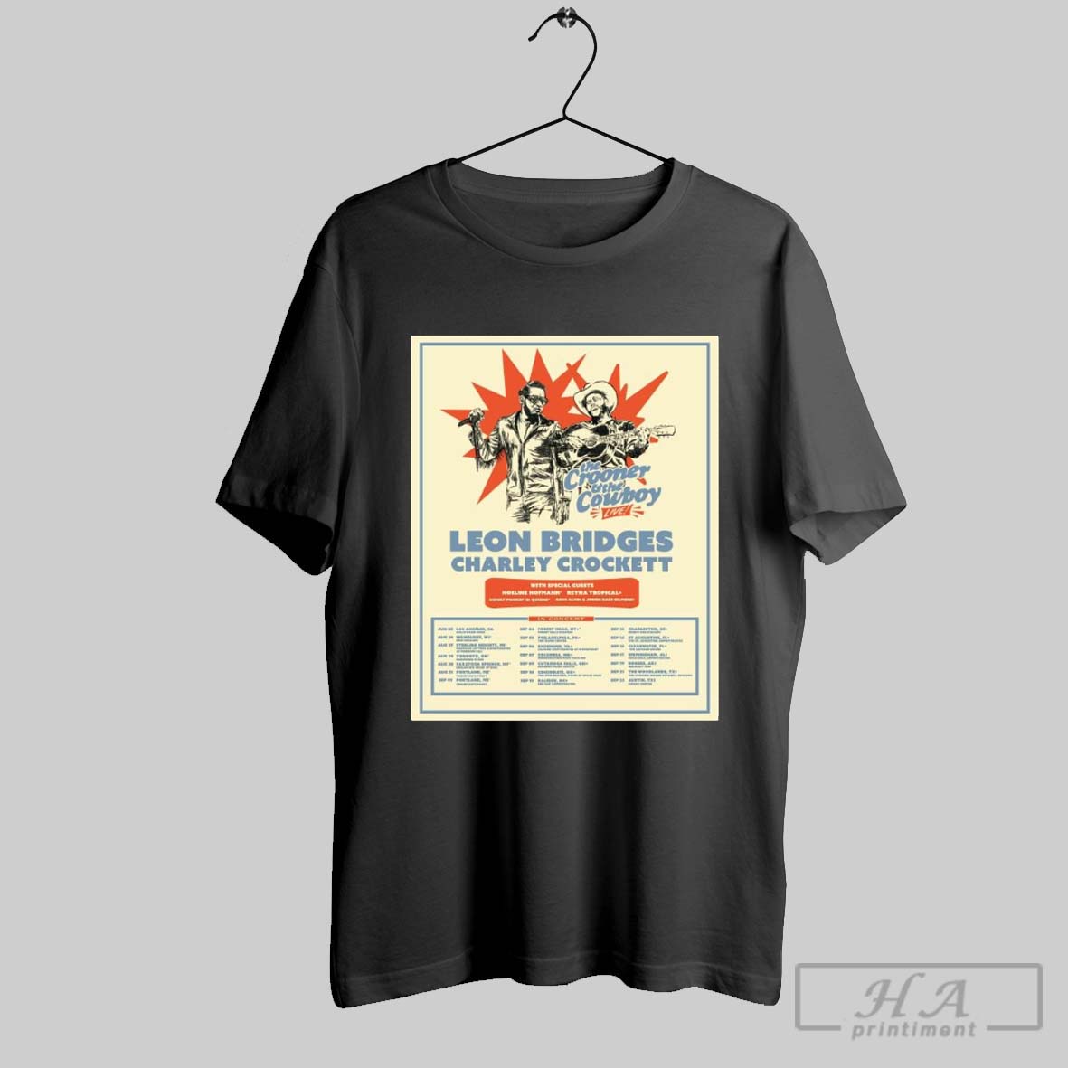 Poster Leon Bridges Charley Crockett The Crooner And The Cowboy With Special Guests Noeline Hofmann 2025 T Shirt