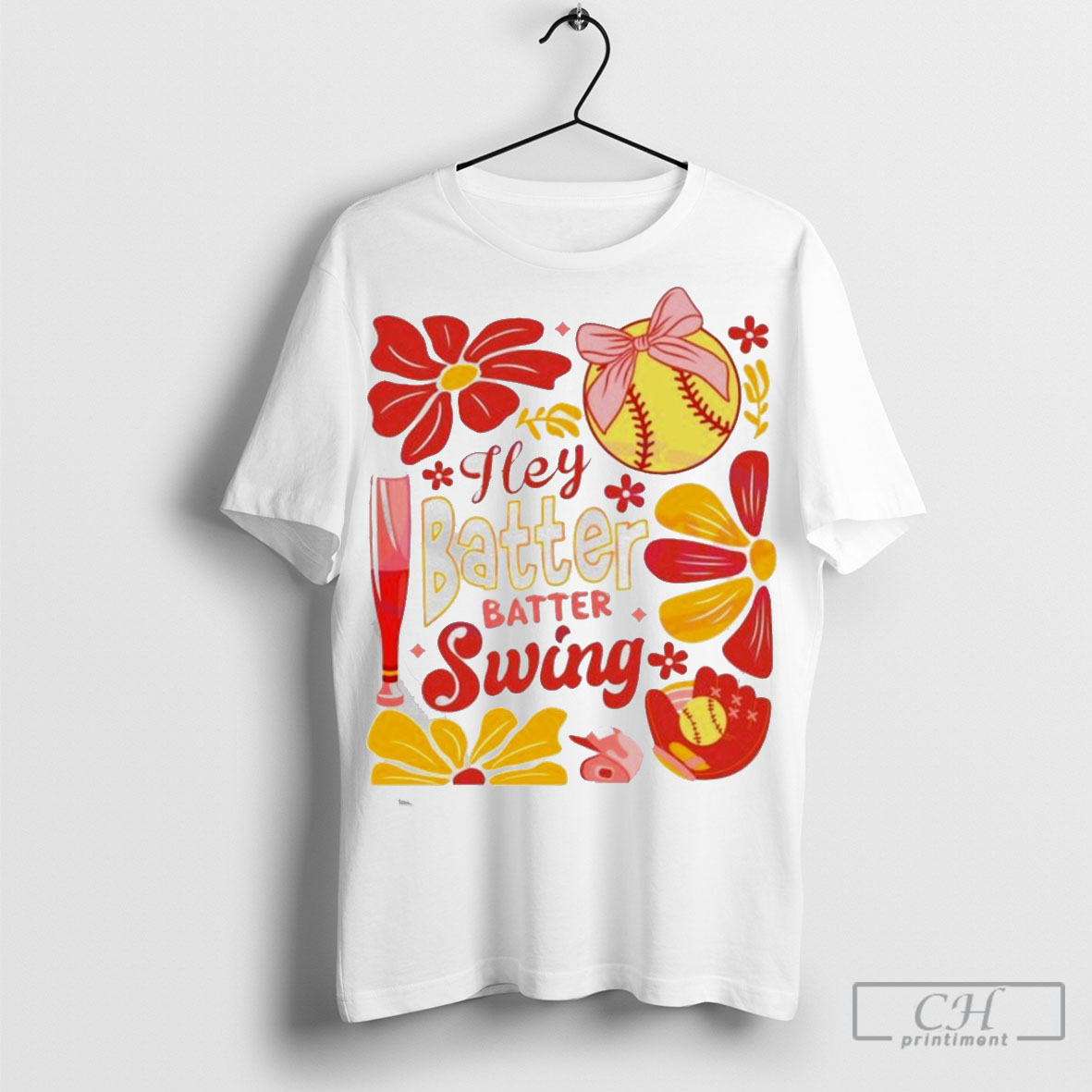 Retro Softball Batter Swing Coquette Flowers Shirt Sweatshirt Poster