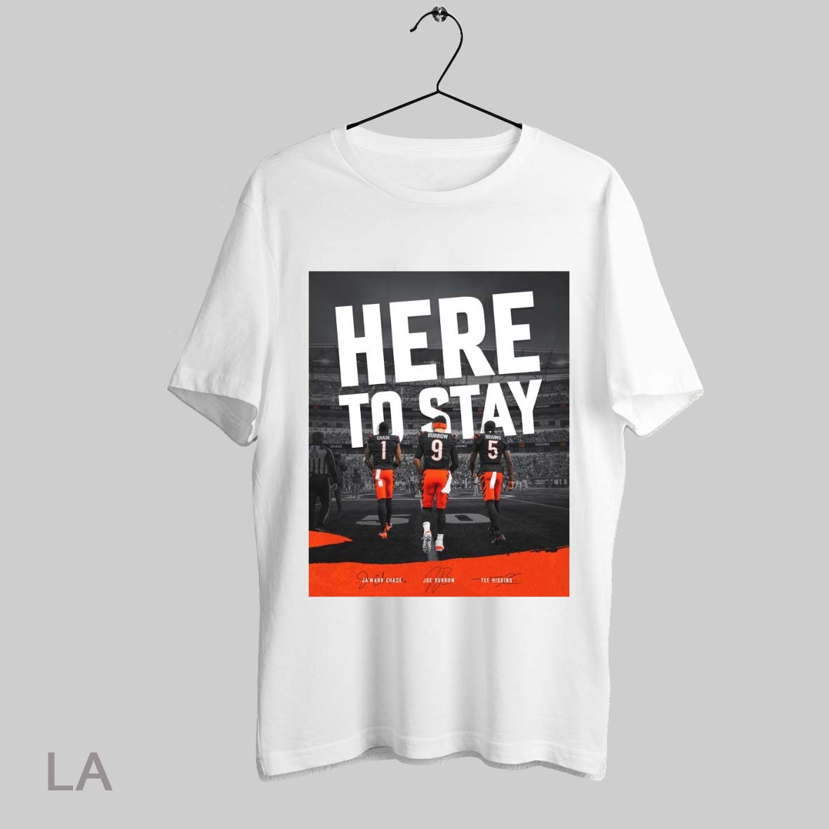 Top Cincinnati Bengals Here To Stay Jamarr Chase Joe Burrow Tee Higgins Signatures Poster T Shirt Sweatshirt Hoodie Shirt