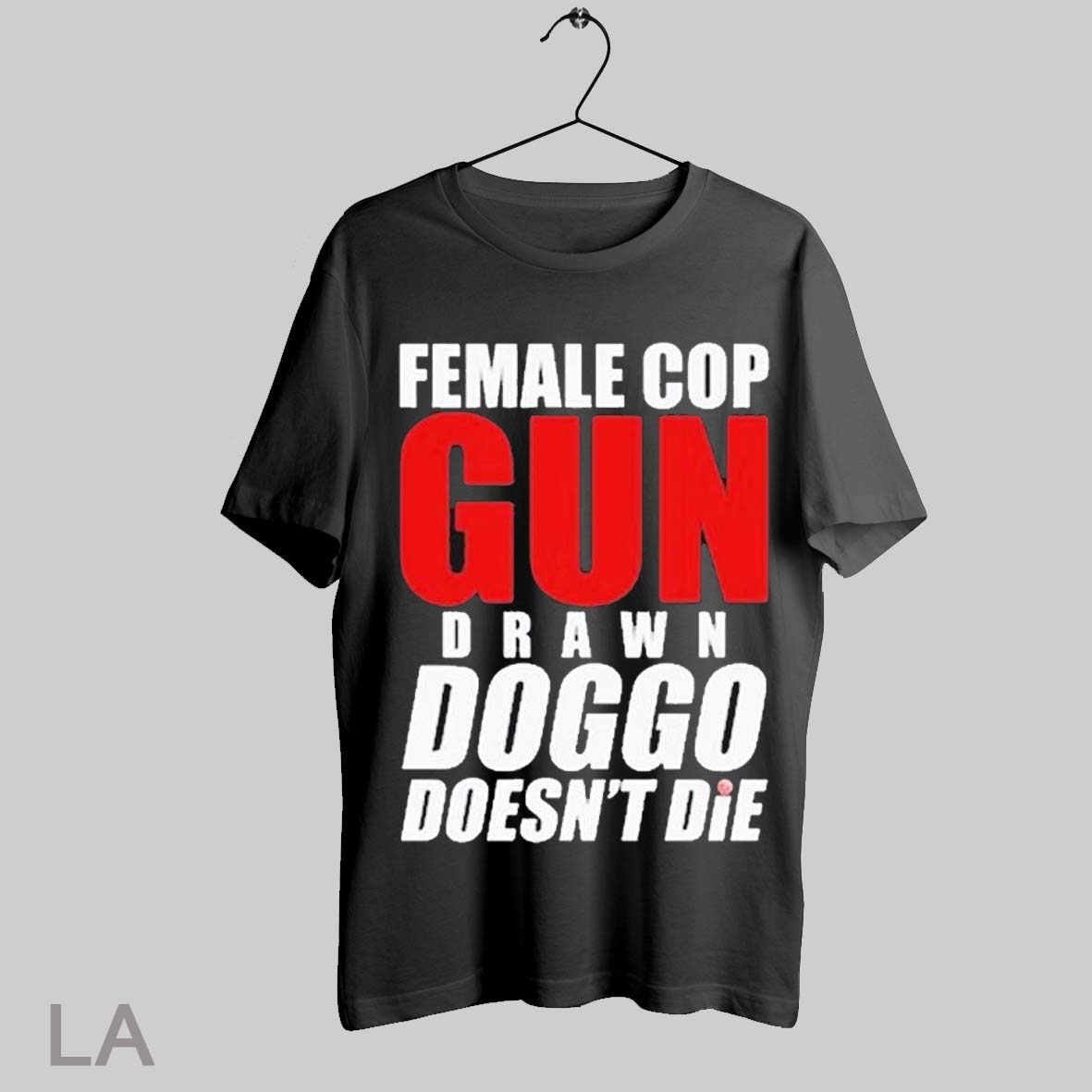 Top Female Cop Gun Drawn Doggo Doesnt Die T Shirt Sweatshirt Hoodie Shirt