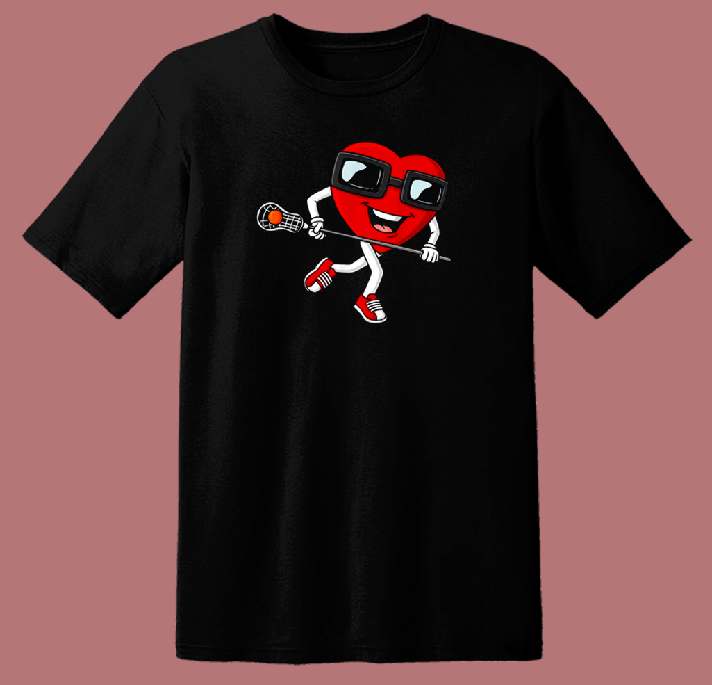 Valentines Heart Holding Lacrosse 80s T Shirt Style