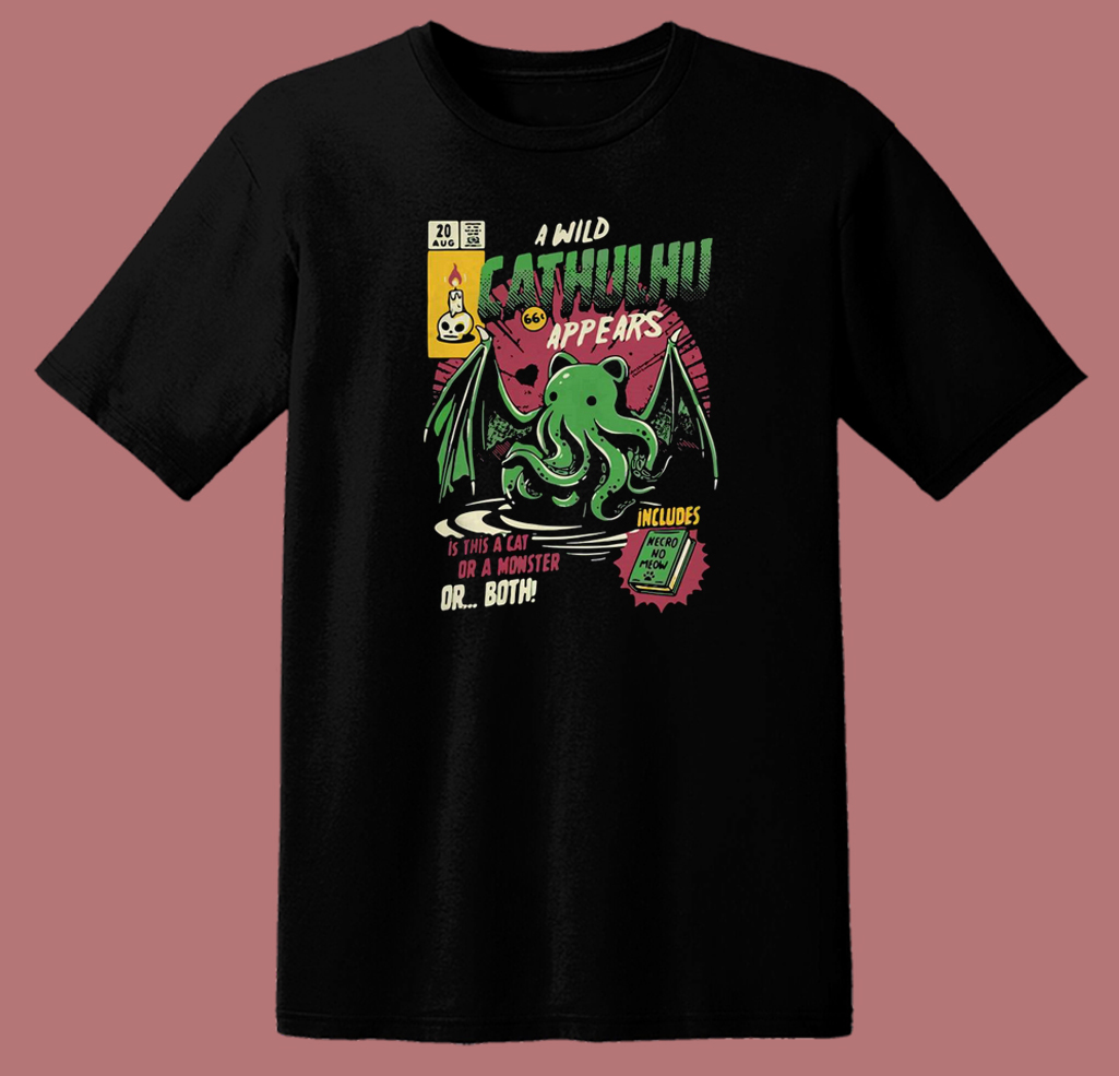 A Wild Cathulhu Appears Funny 80s T Shirt Style