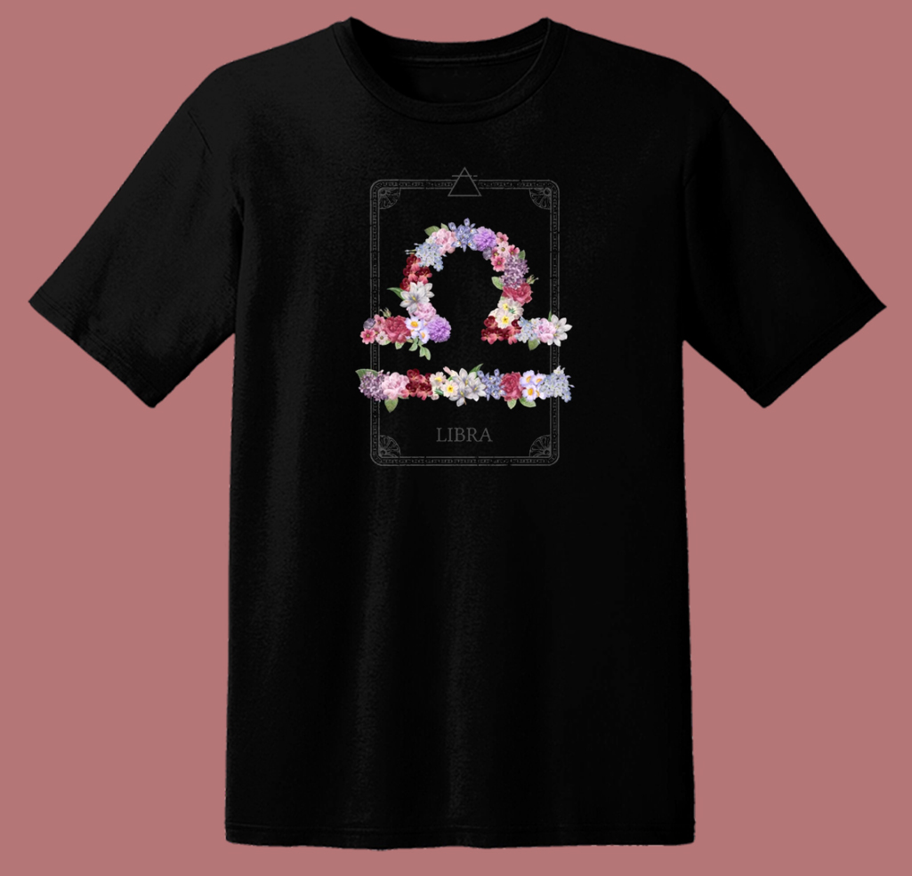 Floral Zodiac Sign Libra 80s T Shirt Style