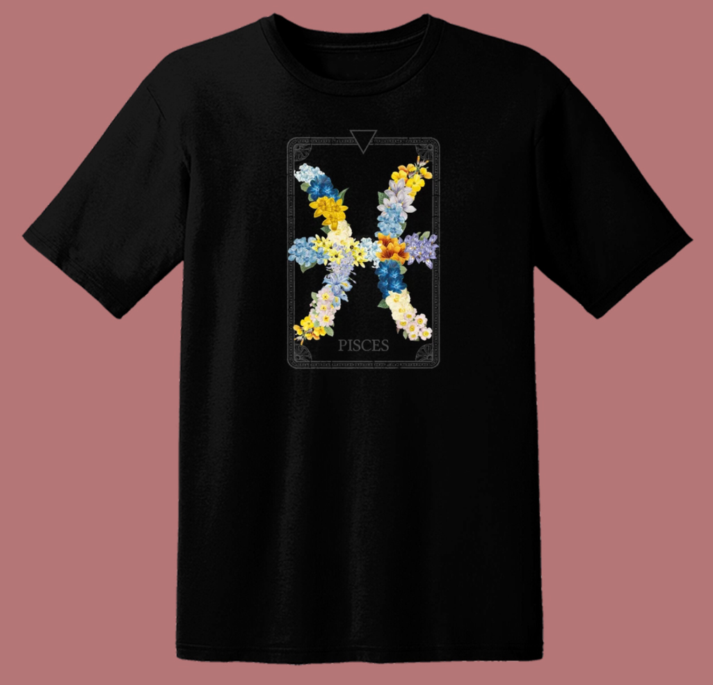 Floral Zodiac Sign Pisces 80s T Shirt Style