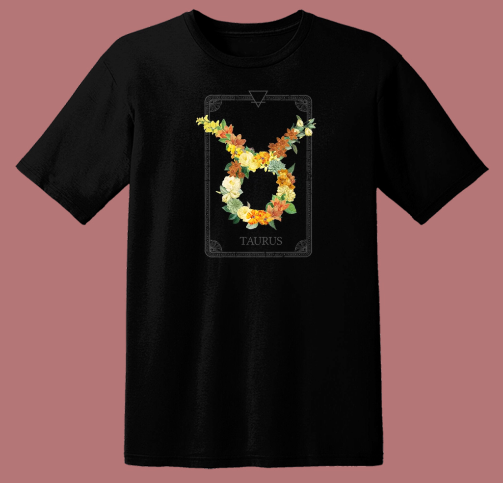 Floral Zodiac Sign Taurus 80s T Shirt Style