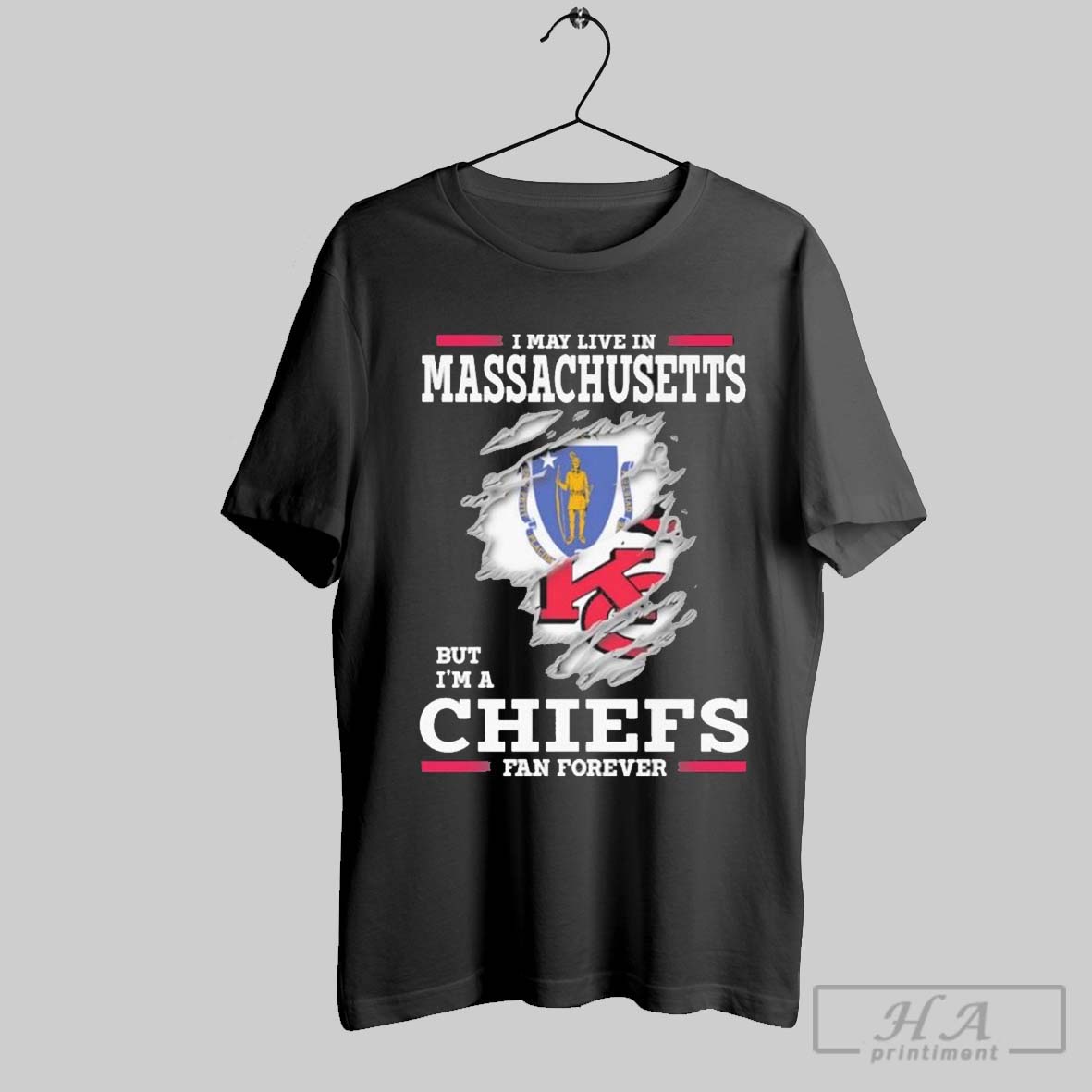 I May Live In Massachusetts But Im A Kansas City Chiefs Fan Forever Shirt