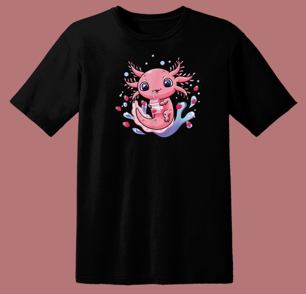 Kawaii Axolotl Strawberry Milkshake 80s T Shirt Style