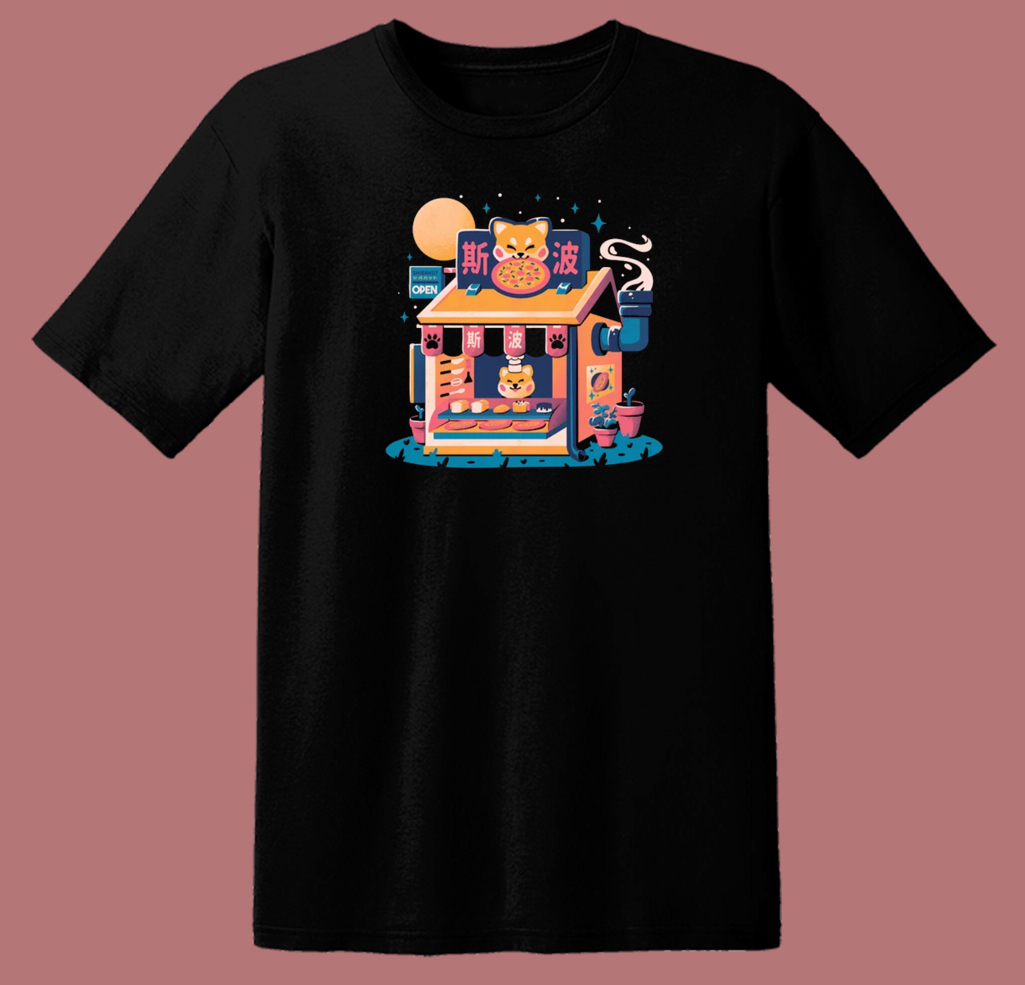 Kawaii Pizza Cute Dog 80s T Shirt Style