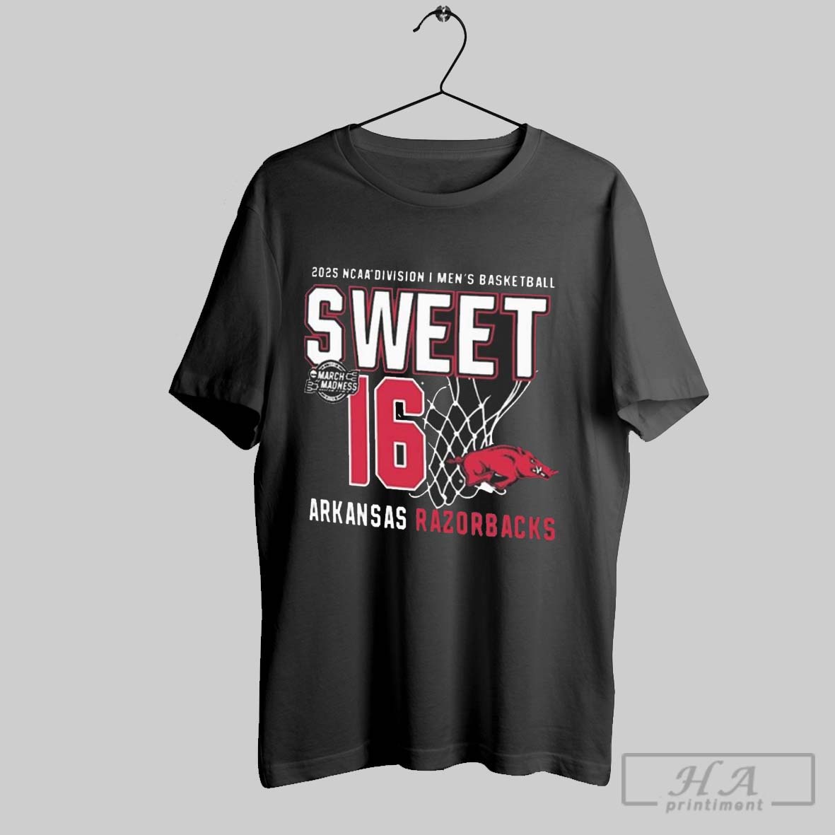 Arkansas Razorbacks Ncaa Division I Mens Basketball Sweet 16 Net March Madness Graphic 2025 Logos T Shirt