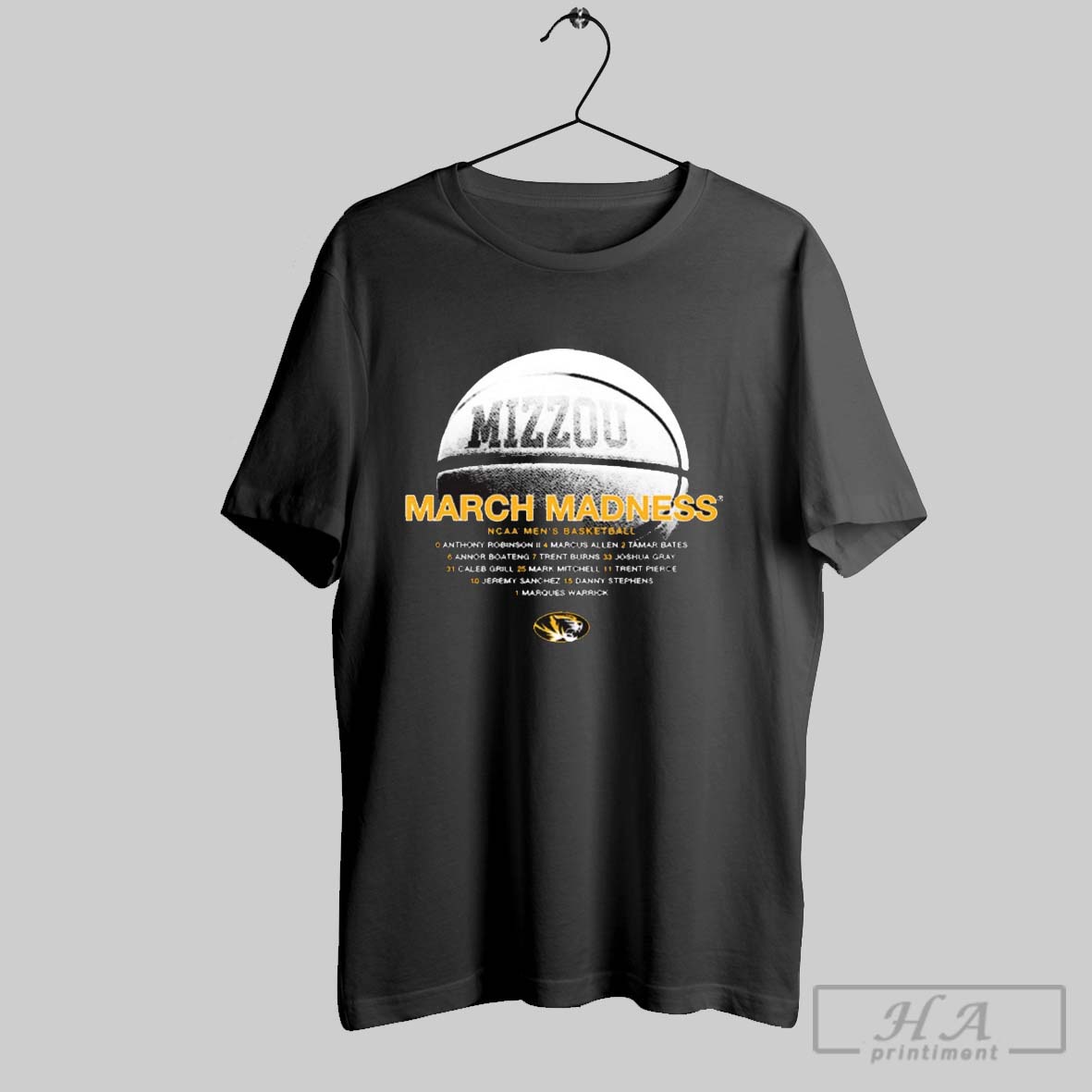 Missouri Tigers Ncaa Mens Basketball March Madness 2025 Anthony Robinson Marcus Allen Tamar Bates Roster T Shirt