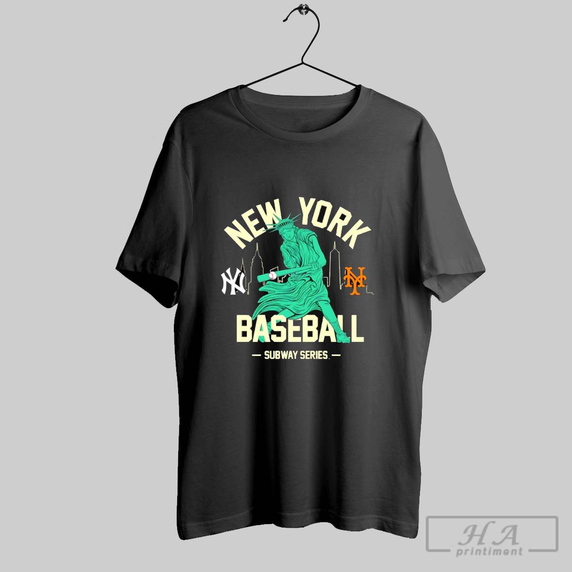 New York Yankees Vs New York Mets Womens Subway Series Swinging Liberty Shirt