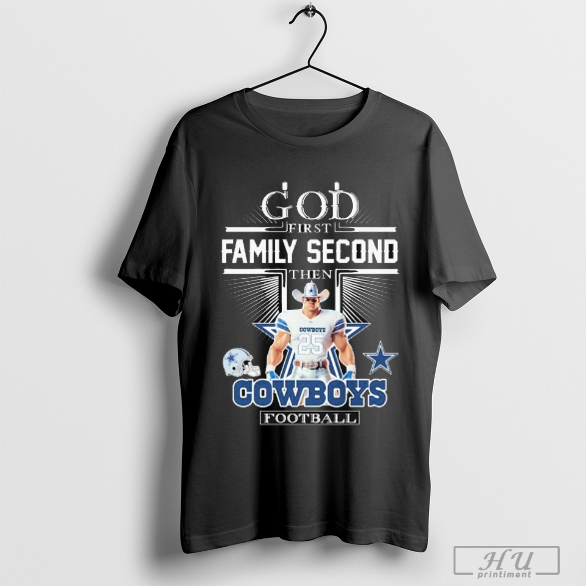 Official God First Family Second Then Dallas Cowboys Football Mascot T Shirt Sweatshirt