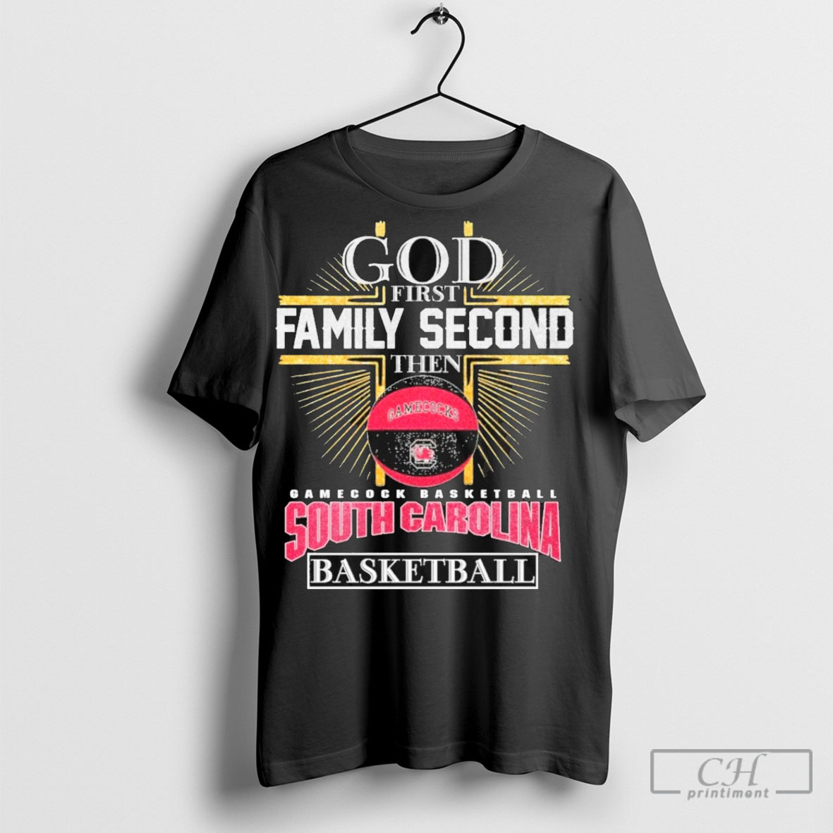 Official God First Family Second Then South Carolina Gamecocks Basketball Logo Shirt